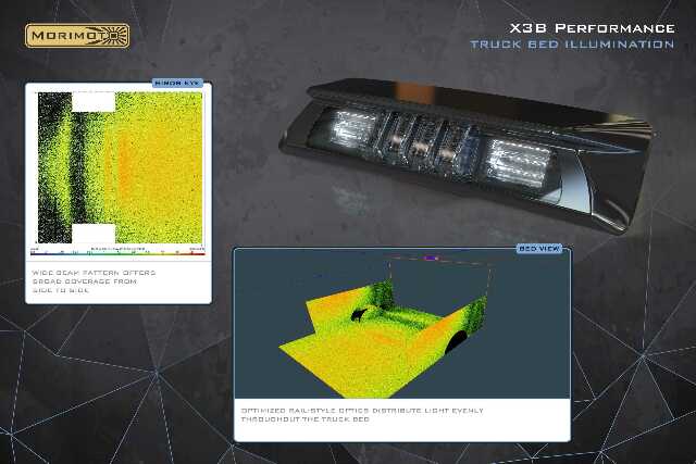 Just Right: Yes, we know. We know. You have been looking for a third brake light upgrade for a while now, only to retreat every time. Discouraged when the search returns no more than the same old variety of el-cheapo options out there. The X3B from Morimoto is different though. It's the one you've been waiting for. It's a no-compromise brake and bed light that offers the perfect pairing of style, performance, and utility, and its now available for your 15+ Ford F-150 truck. Style: Modern headlights have come a long way. Modern tail lights have come a long way... yet Ford is still specifying the same basic 20-year-old third brake lights on even their most modern trucks. Why? The X3B is the perfect grand finale for detail-oriented enthusiasts who just say no to stock. The pronounced 3D red brake light optics are as modern as it gets, yet tasteful. Complimented by the clear optics that illuminate the bed, and all wrapped up inside a piano-black polycarbonate housing. Here, form meets function. Brake Lights: Here, function meets form, because the quad brake light optics are just as effective as they are attractive. Four jewel-like optics molded from optical-grade red polycarbonate paired with powerful 3W LEDs create a high-intensity brake light setup that's easily visible both day and night. An F1-style rapid flash module is also available, and easy to install (SKU X3B01). Bed Lights: Are usually an afterthought, but not with the Morimoto X3B LED brake light modules. Optically engineered rail-style optics have been purposefully designed to effectively illuminate your bed without dead spots. While the X3B looks cool, its also a major upgrade for enthusiasts who value utility, and actually use their trucks too. Easy Install: The X3B re-uses all of the original mounting points, fits like the factory brake light, and will plug into the stock wire harness. There are no modifications required for the installation. Reverse Camera: If your F150 has the integrated reverse light camera, it can be swapped from the original brake light into the X3B with no issues. Part number X3B40 is for trucks without the camera, and part number X3B35 is for trucks with the camera. Style and Safety: All Morimoto assemblies are designed to comply with all DOT, SAE regulations for rear-facing lamps. We pride ourselves on offering stylish, high-performance and safe products for serious enthusiasts, which is why all new Morimoto products are verified by trusted third party labs for compliance and are backed with an industry-leading five year warranty.