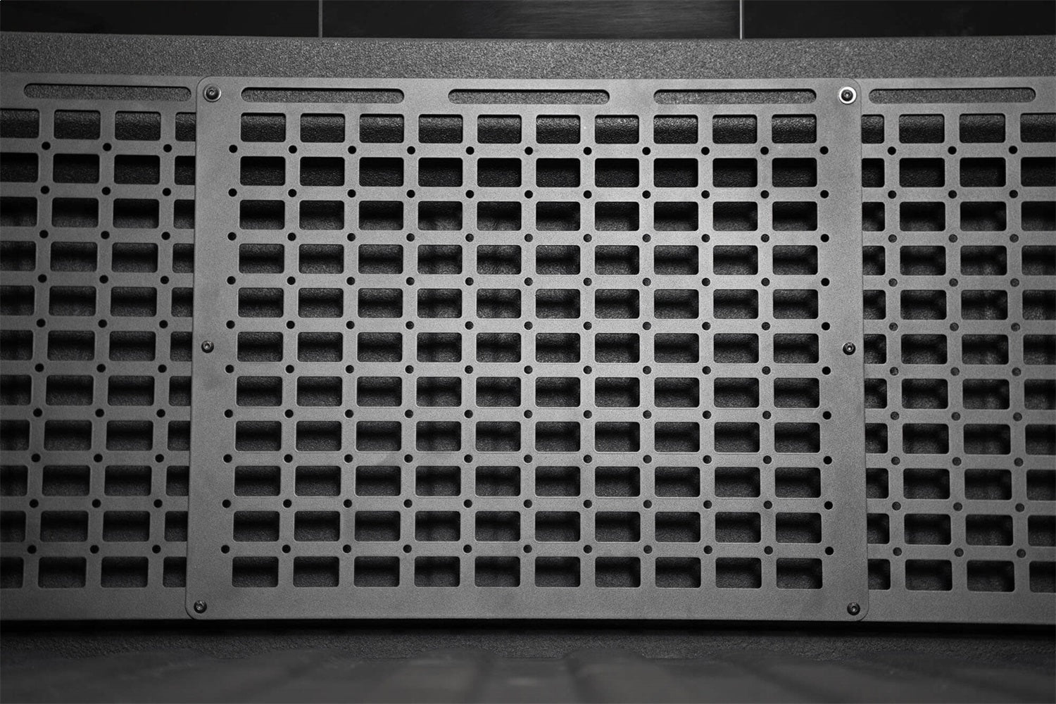 Our Bed Cab Molle Storage Panels are the ultimate cargo solution for those who need effective truck bed storage solutions. Our Molle Panels provide a versatile platform for attaching and organizing your trail gear. They are compatible with a range of attachment systems including quick fist mounts, molle straps, bolts, and other tactical solutions. The panels were designed to closely follow the contours of the truck bed, with a fitment unrivaled by others. The factory tie down points are retained, and additional tie-down options are provided by our system. Manufactured from American steel, these panels maximize cargo storage by utilizing vertical storage space to keep the truck bed free for larger loads. The panels are ideal for storing gear such as shovels, hi-lift jacks, fluid tanks, recovery gear, and more. Our panels are finished with a hammer black powder coat, complementing the factory styling and providing resistance to the elements. Multiple mounting points ensure the panels are rigid and secure, yet are easily removable if needed. As always, these are Made in America. The Bed Cab Molle Panels can be configured in 4 ways: Driver, Center, & Passenger Side Full Set / Driver Side Panel Only / Passenger Side Panel Only / Driver & Passenger Side Panels Only * Please Note: Center panel cannot be installed on its own. It requires BOTH the driver and passenger side panel for installation. ** Please Note: Some drilling is required for installation.