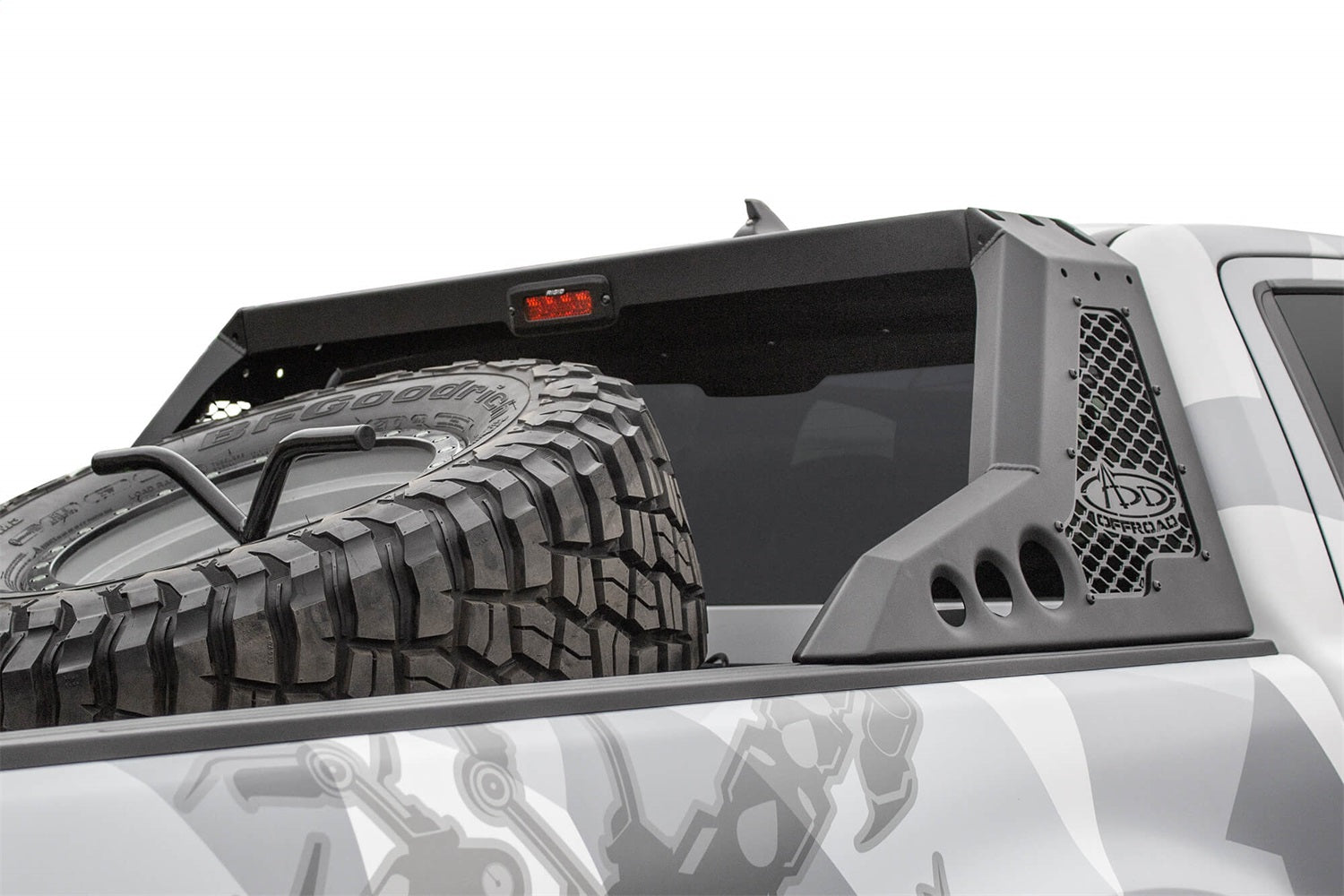 The HoneyBadger chase rack's modular design allows you to add what you want, where you need it, with three key components: base rack, tire carrier, and the roof rack. Mix and match modular components to build a chase rack for your trucks needs. With an optional tire carrier and roof rack add-on you can add as much utility as you want.