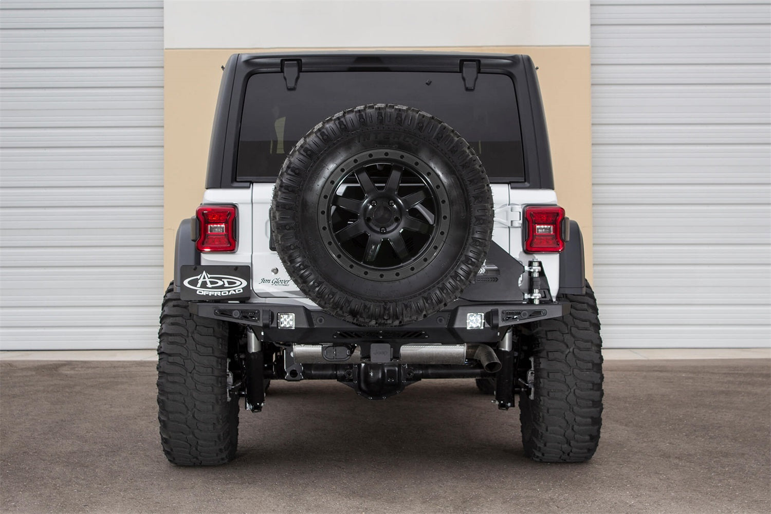 The Addictive Desert Designs Stealth Fighter Tire Gate is an add-on to the Stealth Fighter rear bumper. The tire gate/bumper combination will hold up to a 40" spare tire. The main structure of the tire gate is constructed from a combination of 1/8" and 3/16" steel for strength and reliability. Spherical bearings are used as mounting points for additional strength and smooth operation. The Stealth Fighter tire gate swings open with the Jeep's tailgate and allows for full use of the tailgate with no restriction. This product is fully bolt-on and made in America.