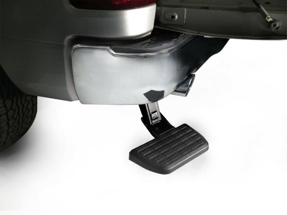 GO AHEAD AND STEP ON IT. BEDSTEP(R) IS A REAL TIME SAVER. Not to mention knee and back saver. Strong and rugged, this non-slip, retractable bumper step quickly flips down with the nudge of a foot providing a faster, easier and safer way to load or unload your pickup's cargo. Supports up to 300 lbs. Frame-mounts, under the rear bumper so it works even with an open tailgate or when towing.