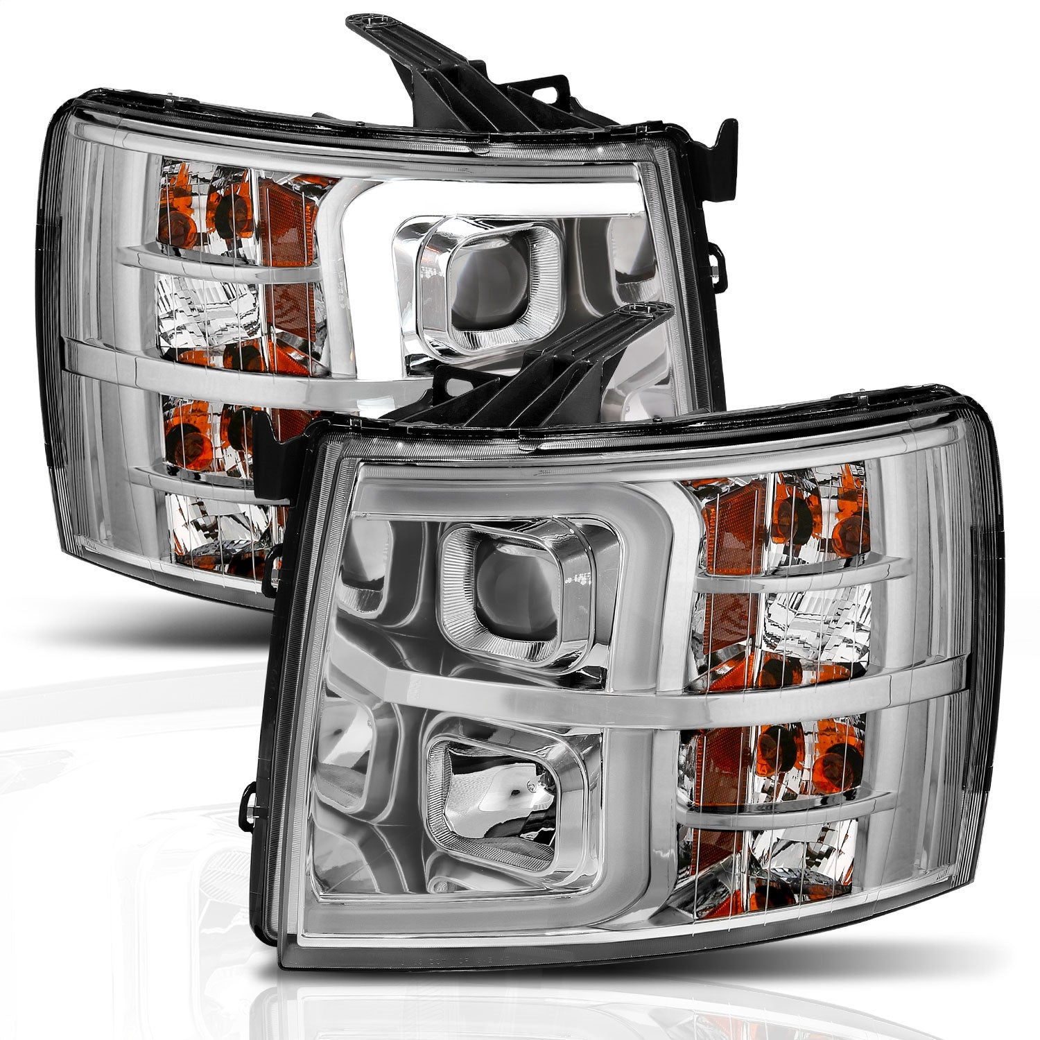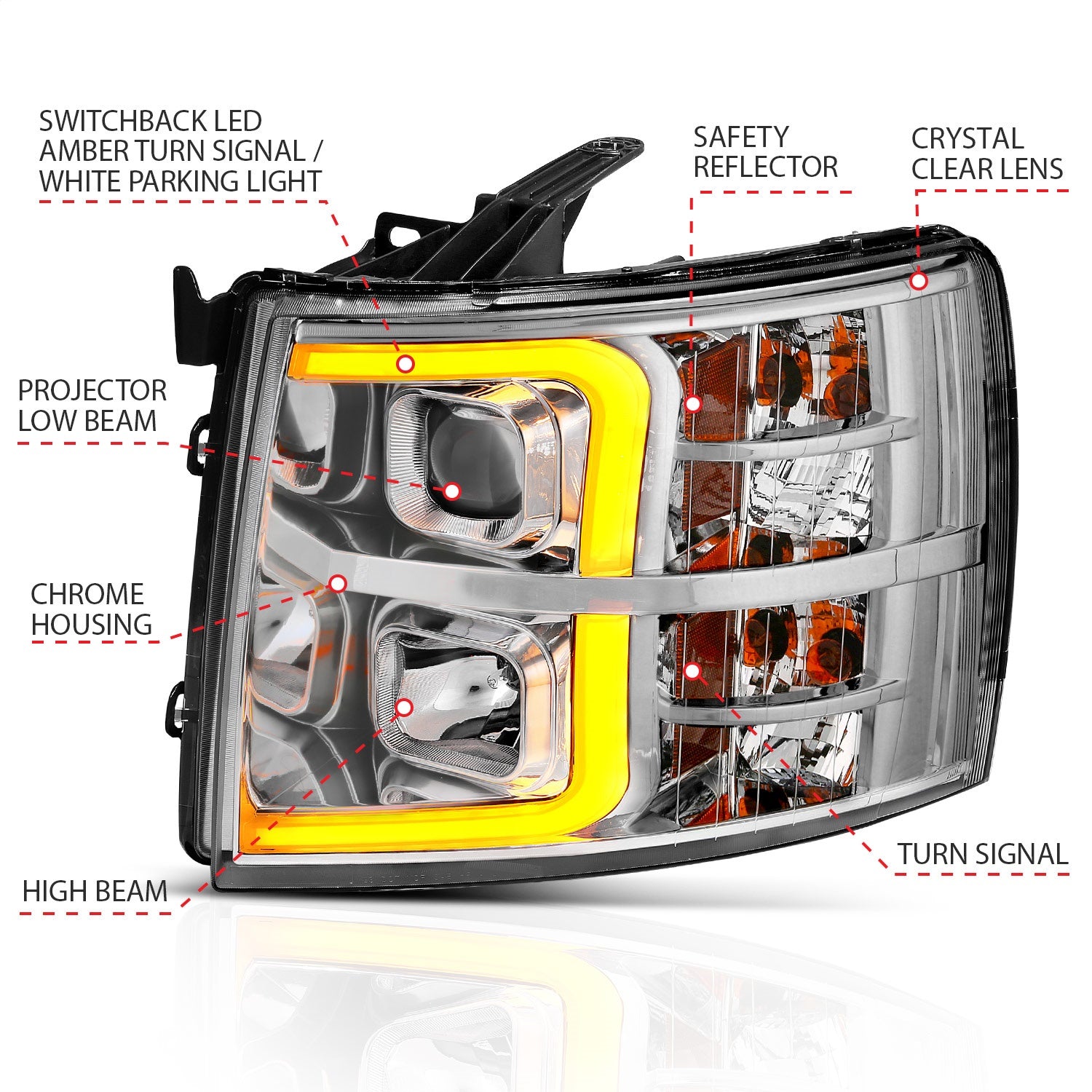 Projector Headlight Set; w/Plank Style Switchback; Chrome w/Amber; Pair;
