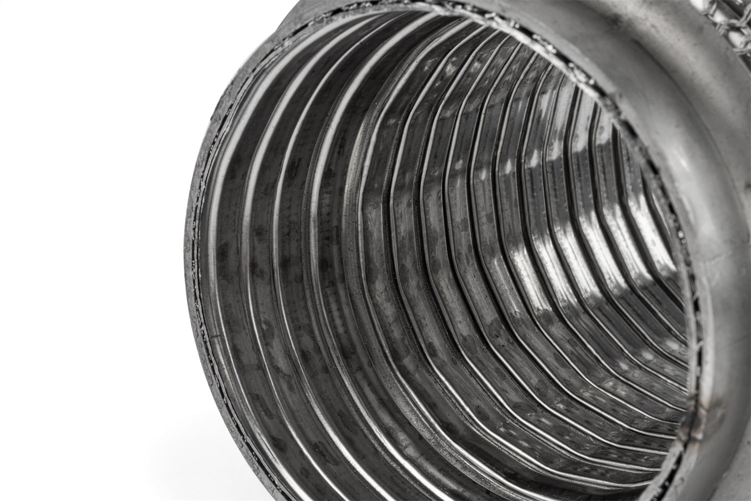 APR's premium flex sections are now available! Perfect for the do-it-yourself enthusiast fabricating a custom exhaust system, these flex sections are designed to stand the test of time. Internally the flex section is fully sealed with a corrugated interlocking lining that improves flow and reliability. Externally, the flex section features a low profile design with minimal braiding material. This eliminates common issues with other designs that can collapse, billow, rub, rattle, and fray over time. Created from T304 stainless steel, this flex section is designed to stand the test of time.