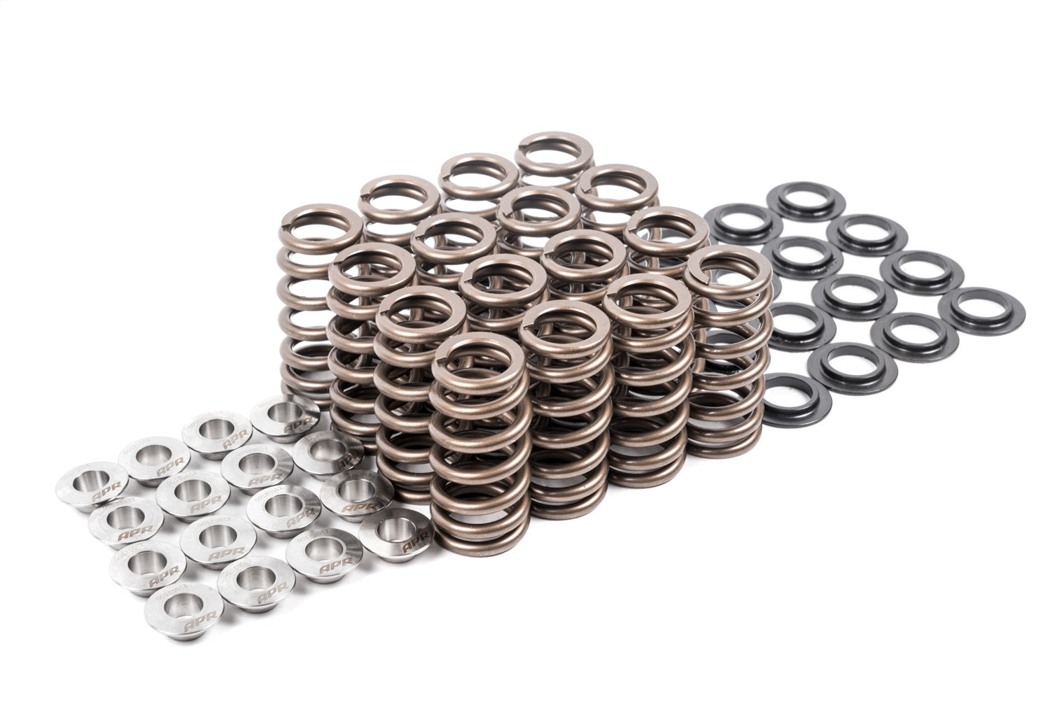 The APR Valve Spring System is a high performance, lightweight upgrade designed to increase valve control and eradicate valve float common on many applications. APR's design specifications called for a valve spring, retainer and spring seat combination that doesn't overpower and snap the OEM valves or erode the aluminum spring seat, while still maintaining exceptional valve control. The result is an advanced design that's 28% lighter yet 20% stiffer than the high performance OEM Golf R setup and is proven to eliminate the OEM valve train's weakest link. We call it Performance Without Compromise!