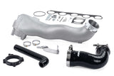 The APR Throttle Body Inlet System is a comprehensive upgrade to the factory charge pipe system from the Intercooler outlet to the throttle body. We replace all components and provide a new, larger, free flowing system that flows roughly 34% more than stock! This was achieved by increasing the cross sectional area of the system and by reducing the tight radius bend directly in front of the throttle body. Our system does away with two potential boost leak points thanks to our single cast design. Eve upgraded the factory rubber Intercooler outlet hose to a multi-ply wire-reinforced silicone design with strong t-bolt clamps that resist boost leaks better than their stock counterparts. Our new billet throttle body to manifold adapter provides a convenient boost and vacuum reference point which can be used for a gauge, or anything else in that suits your build. Lastly the system comes complete with new throttle body and intake manifold gaskets, which are common problematic leak point many never know to address. This comprehensive system is much larger than stock thanks to the sweeping design of the cast inlet pipe, and oversized silicone hose. However, despite being dramatically larger than stock, the complete system is a negligible 2.4 lbs over stock! Simply put, the APR system is a complete upgrade from start to finish, flows better than stock and our competition, and is the only throttle body inlet system you'll ever need!