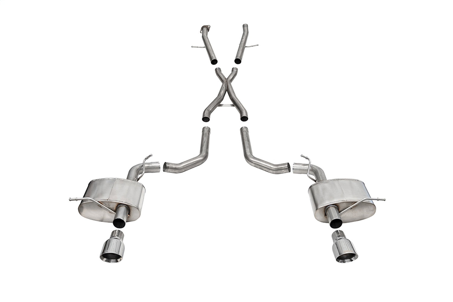 CORSA Performance's 2018+ Dodge Durango SRT Exhaust Offering Has Arrived! The Dodge Durango SRT catback exhaust assortment is available in both Sport and Xtreme sound levels allowing the driver to tailor the exhaust system to their exact sound profile. Made from 2.75 in. 304 stainless steel construction and featuring CORSA's Best-in-Class No Drone RSC(R) Technology, this is the ultimate Durango SRT exhaust system. CORSA's Sport sound level is 7 decibels louder than the stock exhaust system and offers an aggressive cold start, moderately aggressive exhaust note under acceleration while maintaining stock levels of in-cabin volume. CORSA's Xtreme system is 15 decibels louder than the stock system and noticeably more aggressive than the Sport system on both cold start and during acceleration while only inducing slightly more in-cabin volume. All exhaust systems come with dual wall stainless steel exhaust tips and come available in both polished and black PVD coating. CORSA Performance exhaust systems are made possible through a 25+ year commitment to perfecting the Science of Soundc and are proudly made in the USA and backed by a Limited Lifetime Warranty.