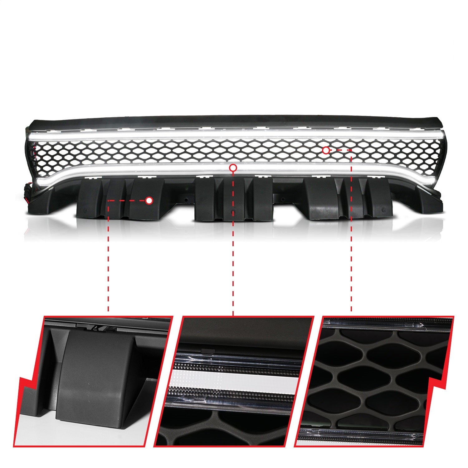 Grille w/ LED; Black Housing ;Full led light; Front Grille with Initiation and Running Light/DRL;