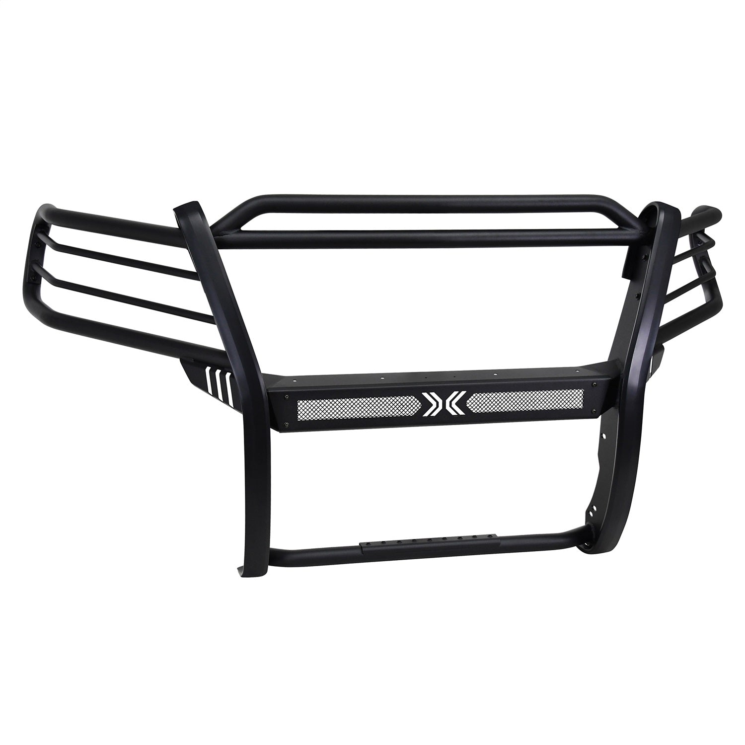 Westins Sportsman X Grille Guard effectively combines aggressive styling with heavy duty front end protection. Engineered to provide both great looks and performance, Sportsman Xs unique design compliments todays larger grille designs, and is available to fit most full and mid size truck applications. Sportsman X has an optional detachable mesh panel (sold separately) which is specifically designed to fit the opening in the center section of Sportsman X Grille Guard, or can be removed to accommodate the flush mounted 26in. dual row LED light bar (sold separately). A smaller removable mesh panel designed for the factory sensor location opening is included as standard with Sportsman X. For specific Chevy and Dodge/RAM applications a Sportsman X Sensor Kit (sold separately) is available. An exterior step plate is located on the 1-5/8in. bottom tube to provide easy access to the engine compartment. Built with heavy duty 2-1/4in. upright rubber strips and 1- 5/8in. outer tubes, Sportsman X Grille Guard is designed to provide protection and style for years to come.