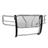 The HDX Grille Guard is the ultimate in extreme truck gear. Its a fully welded 1-piece grille guard that features full wraparound wings made of heavy duty 2in. diameter tube. Uprights are finished and protected with extra wide rubber that is 1/8in. thick and 2 3/4in. wide resulting in a solid clean look. The full punch plate grille protects the vehicles grille area. HDX Grille Guards are available in stainless and black powder coat finish.
