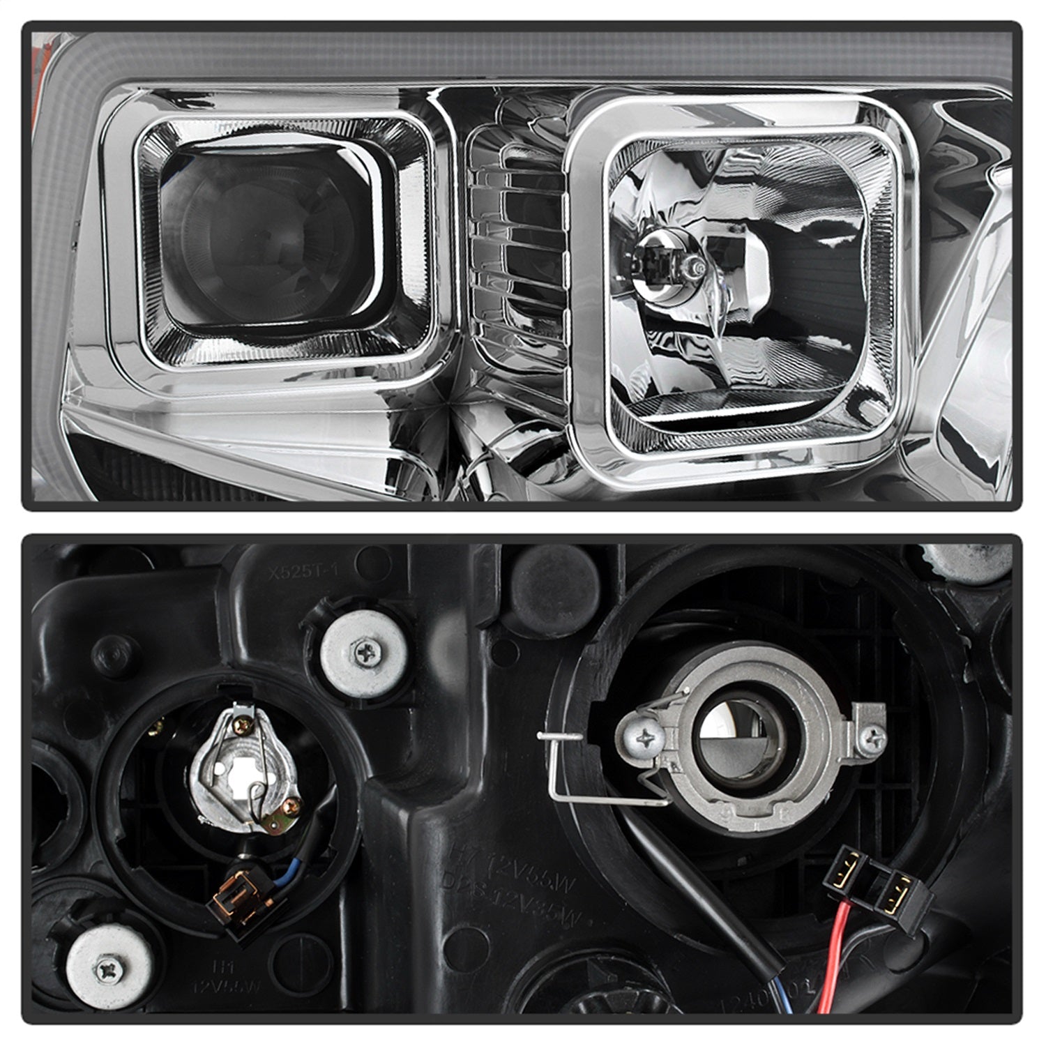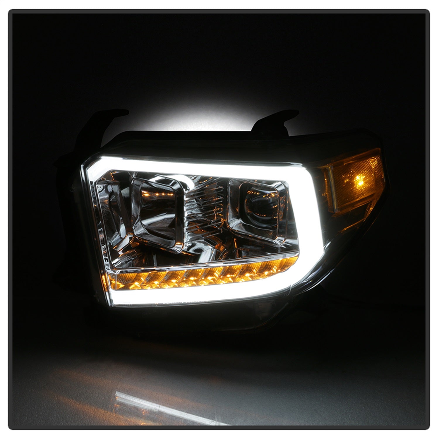 DRL LED Light Bar Projector Headlights; Chrome;