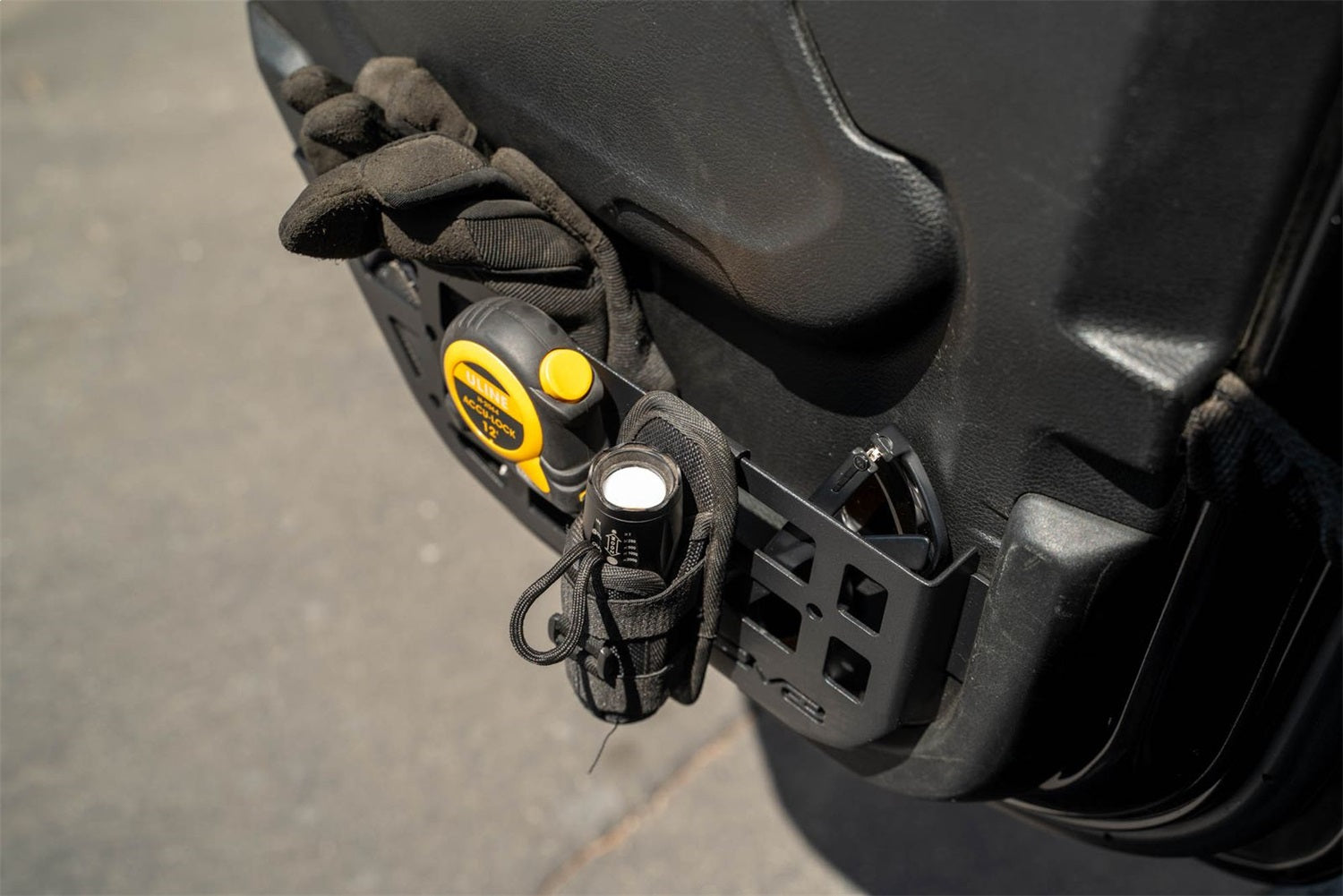 Our Slim Rear Door Molle Pockets replace the weak factory netting with sturdy steel panels. Store daily accessories inside of the pockets, and mount tools, sheaths, holsters, pouches, and more quick-access gear to the molle panels. Enjoy optimal legroom with the pockets slim width design as opposed to the front panel protrusion on our standard Rear Door Molle Pockets (MPJL-06). For a quick and straightforward installation, the pockets snap-in with locking tabs to secure them into place. For a sleek finish that complements the interior of your rig, the pockets are finished in a micro-texture black powder coat.