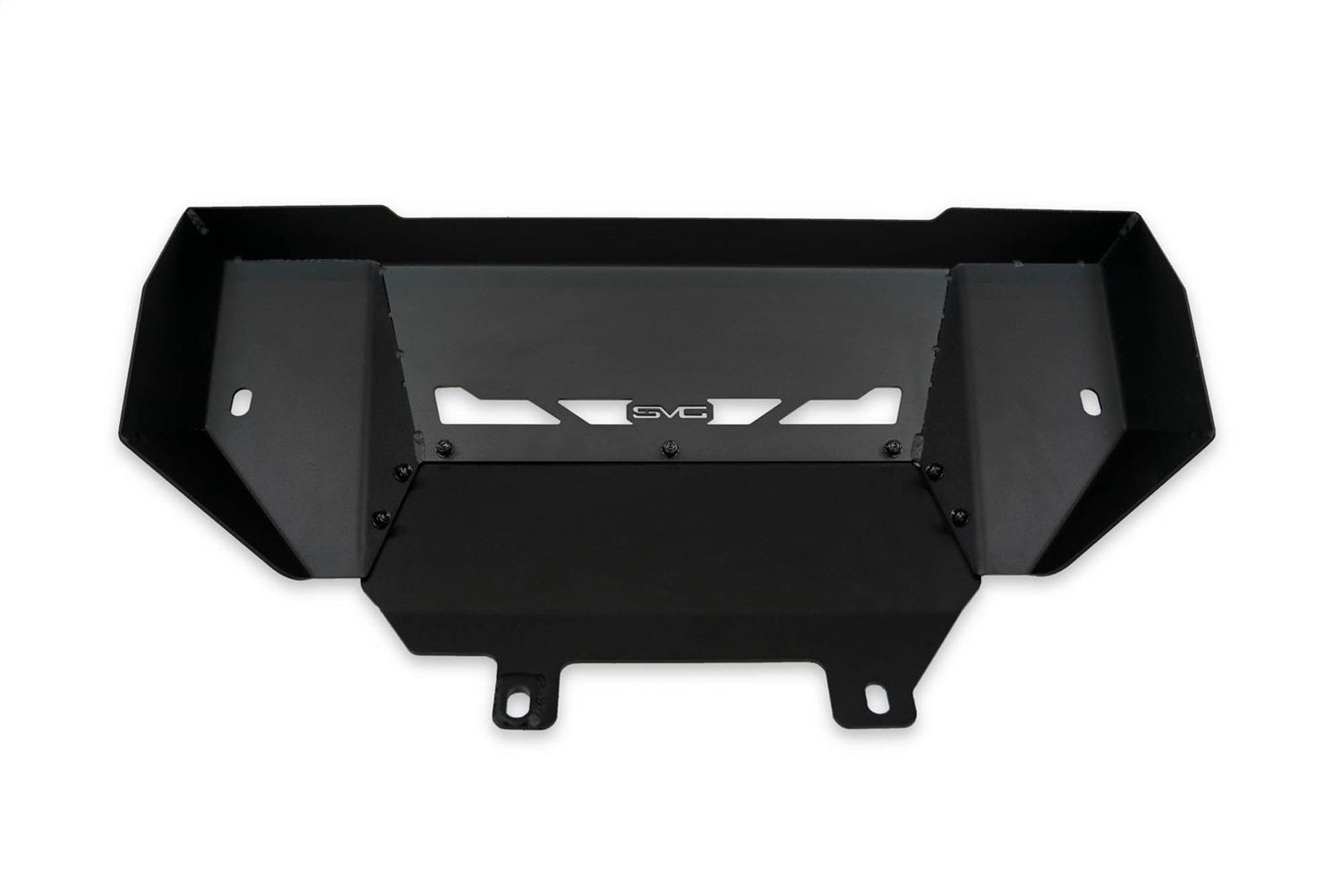 Our Low Pro Skid Plate protects the bottom of your engine and intercooler from shrubs, debris, and other off-road obstacles. It's vented to provide airflow to your engine bay to help prevent overheating. Our skid plate is attached via four mounting points for extra strength and stability when on rough terrain. The skid is designed to be paired with an aftermarket front bumper, and it bolts-on to the factory mounting points with no drilling required. The plate is easily removable if you need quick access to the underside of the engine. Made from high-quality steel and finished in a resilient micro-texture black powder coat, our skid plate is designed to protect the front undercarriage of your rig while providing a sleek look that highlights your rig's styling. * Please Note: This skid plate will not fit the factory front bumper, and it is not compatible with the Bronco Raptor. ** Please Note: If the factory skid plate mounts have built-in D-rings, they will need to be cut flush for installation.