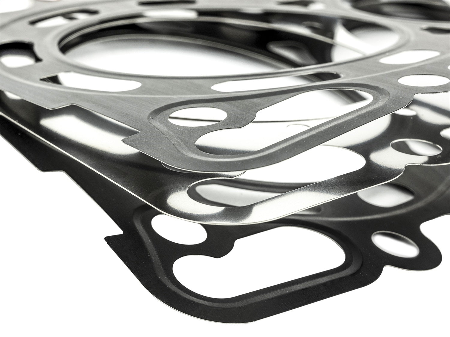 Multiple Layer Steel (MLS) type of gaskets have increased strength against vibration and corrosion, and have of multi-layers of steel with an additional sealing layer. This additional layer is an HR-180 Rubber coating for superior sealing. MLS head gaskets are the proven choice for high-performance engines. Stopper type gaskets come in several styles, all with extra material strategically sandwiched between the layers to improve sealing against the increased power and vibrations found in high-performance engines. These types of gaskets are also ideal for installation when there is minimal surface around the combustion chamber or cylinder walls, i.e. due to boring for additional cylinder size.