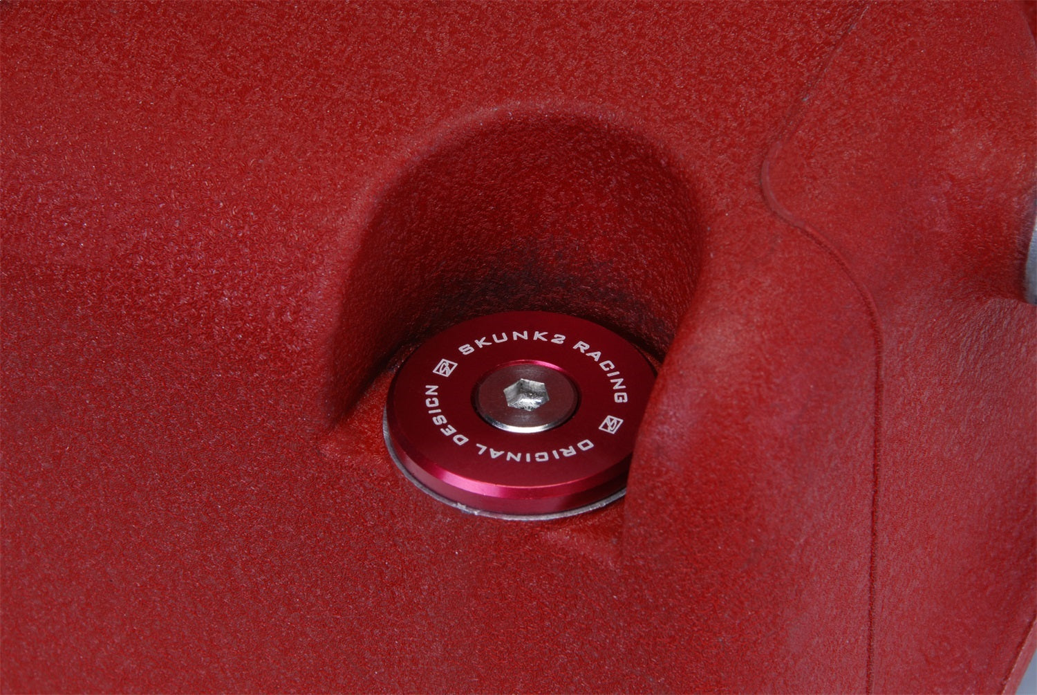 Skunk2 is proud to introduce the most unique, low-profile dress-up hardware you've ever seen. An original design, Skunk2's Low Profile Valve Cover Hardware kits are the only ones designed specifically for K-series valve covers. Low Profile Valve Cover Hardware kits are a comprehensive design, featuring specially engineered 'standoffs' that include provisions for Skunk2's unique, low-profile washers and flush-mounted, stainless steel hardware. Each kit includes 10 low-profile washers and 10 flush-mounted, stainless steel bolts. All kits are compatible with OEM valve covers as well as OEM and most aftermarket spark plug wire covers. Each OEM-grade standoff replaces the factory mounting studs and is secured to factory specifications. No other valve cover kit available does this. A series of Viton O-rings and the appropriate standoff extensions are included with each kit to ensure a leak-free seal and OEM fit and finish. Only Skunk2's 36-piece Low Profile Valve Cover Hardware kits include washers and standoffs for all six mounting points as well as for fastening most spark plug wire covers into place. And only Skunk2 offers the most low-profile washers and bolts around, measuring more than 75% thinner than the factory washer and nut combination. Skunk2's Low Profile Valve Cover Hardware kits are manufactured from 6061-T6 aluminum and are available for K-series engines in black, blue, gold, purple, red, and clear hard-anodized finishes, and feature Skunk2's classic, laser-etched logo. Skunk2 employs the same design and manufacturing methods for all of its Fine Tuning accessories as it does for its top-of-the-line racing components. Skunk2's Low-Profile Valve Cover Hardware kits help put that unique finishing touch onto the vehicle you work so hard to make perform well, and we make every effort to ensure that their style is consistent with our rich racing heritage.