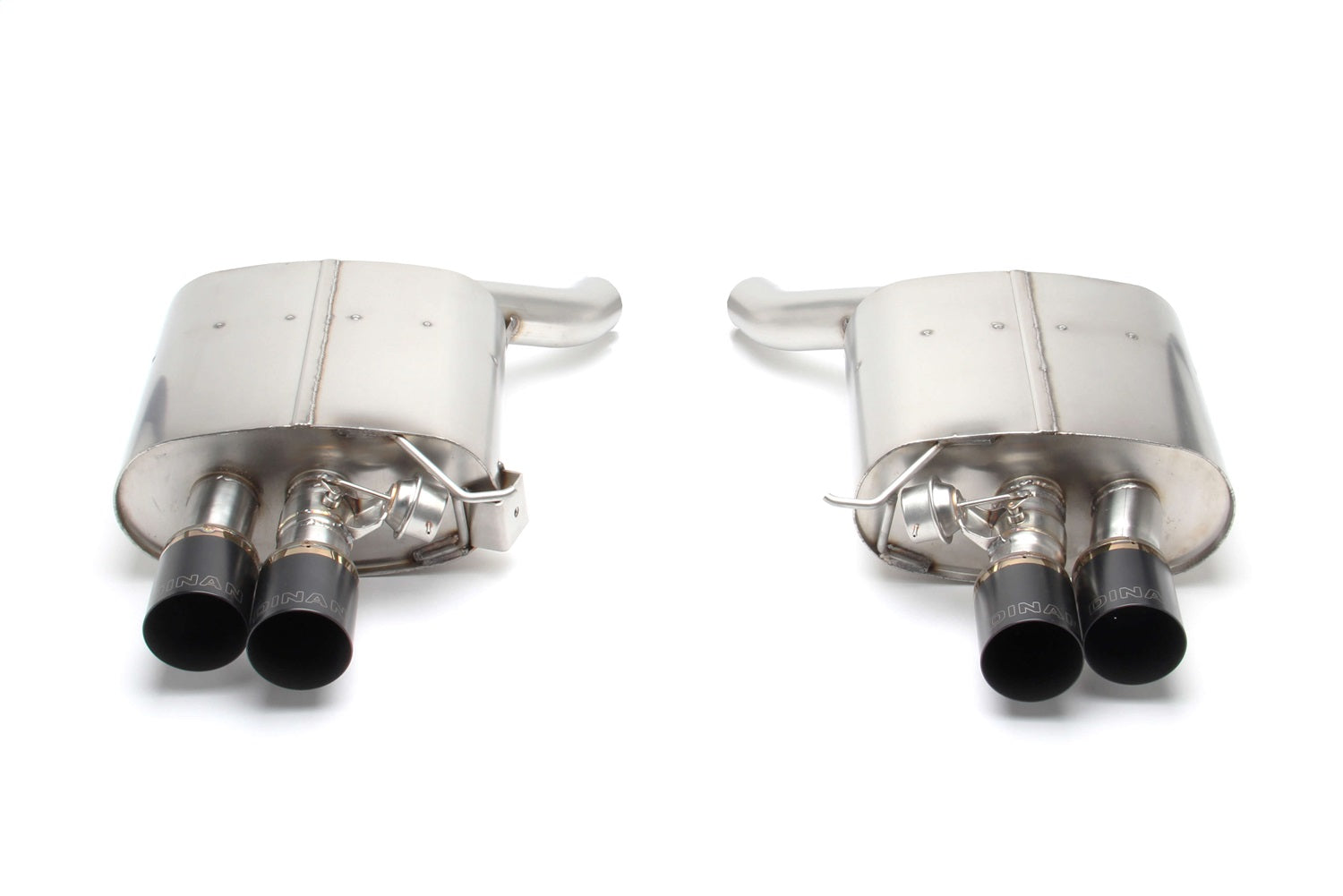Dinan free flow axle-back exhaust improves exhaust flow by reducing back pressure, resulting in increased power output and a great sporty sound that is civilized when you want it to be and pleasantly aggressive under harder acceleration with zero drone. 100% stainless steel construction and exacting specifications ensure that the system fits correctly using the factory hangers and will resist corrosion for years to come. A vacuum controlled butterfly valve is utilized to improve flow at wide open throttle while keeping things civilized and drone free throughout. The design reduces overall weight as well and features 3.5 in. black ceramic coated tips for a tasteful high performance look.