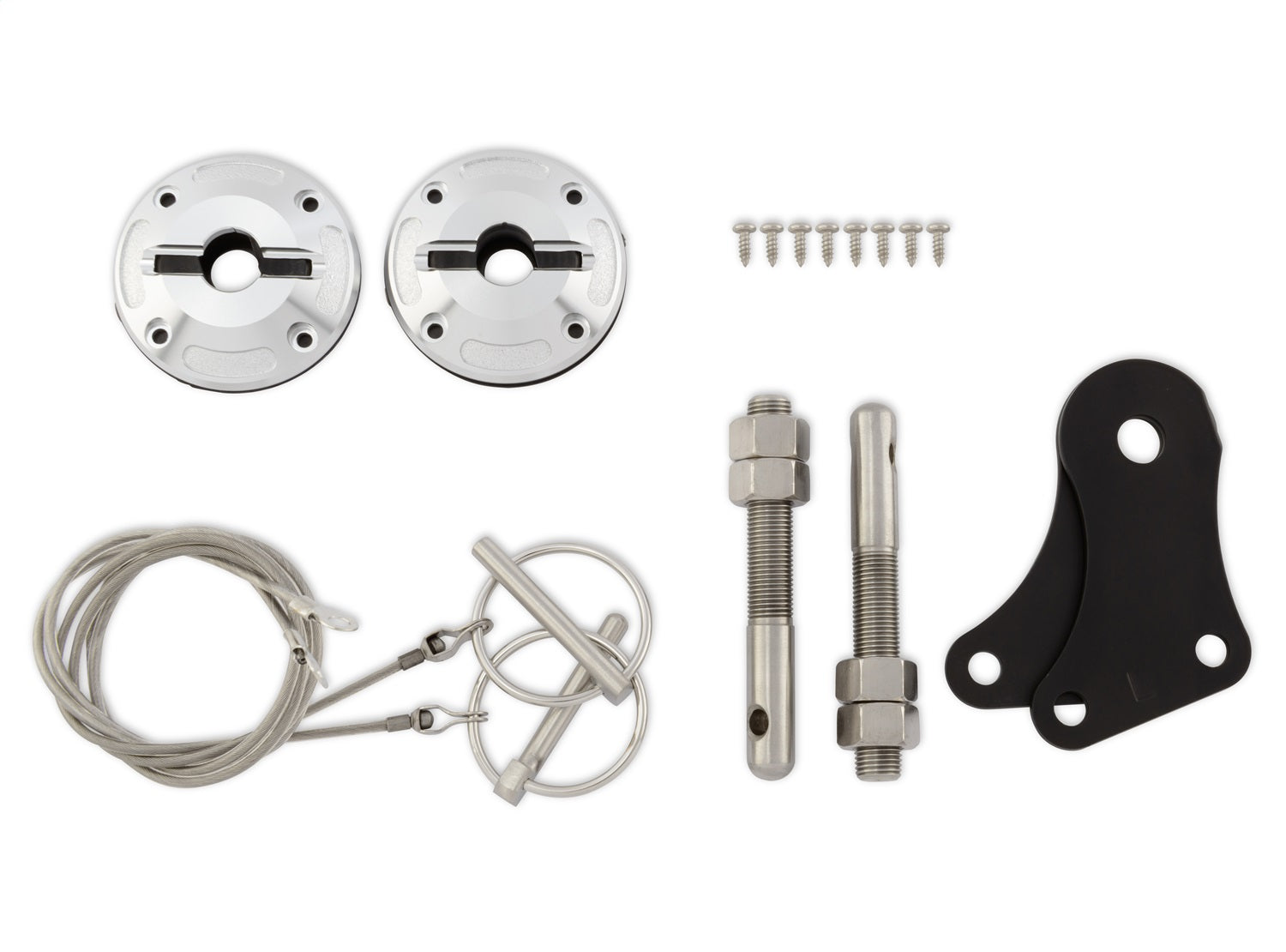 Hood Pin Set; Billet Aluminum/Stainless Steel;