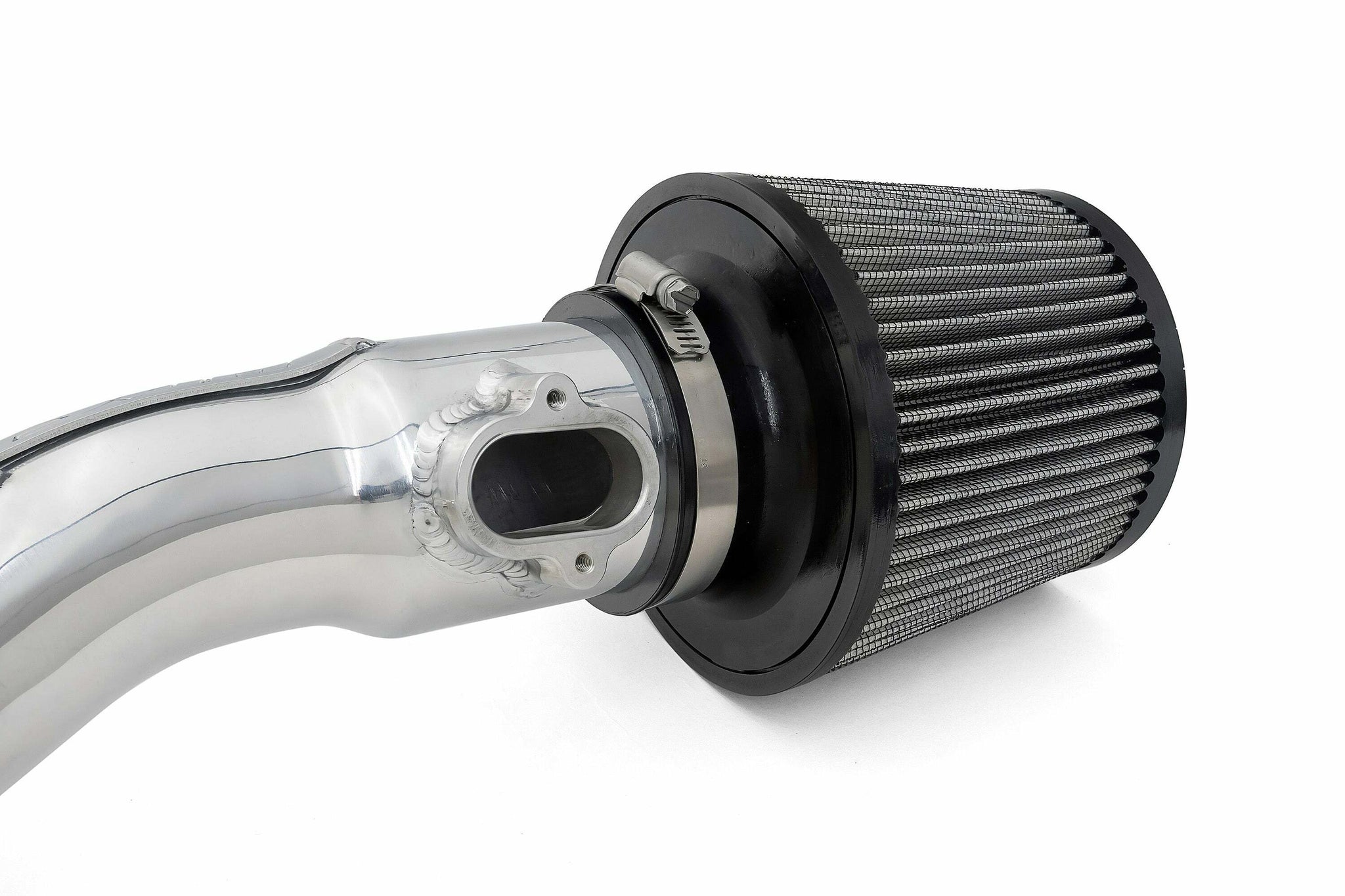 2.5" mandrel-bent aluminum tubing and reusable high-flow cotton air filter for improved air flow.