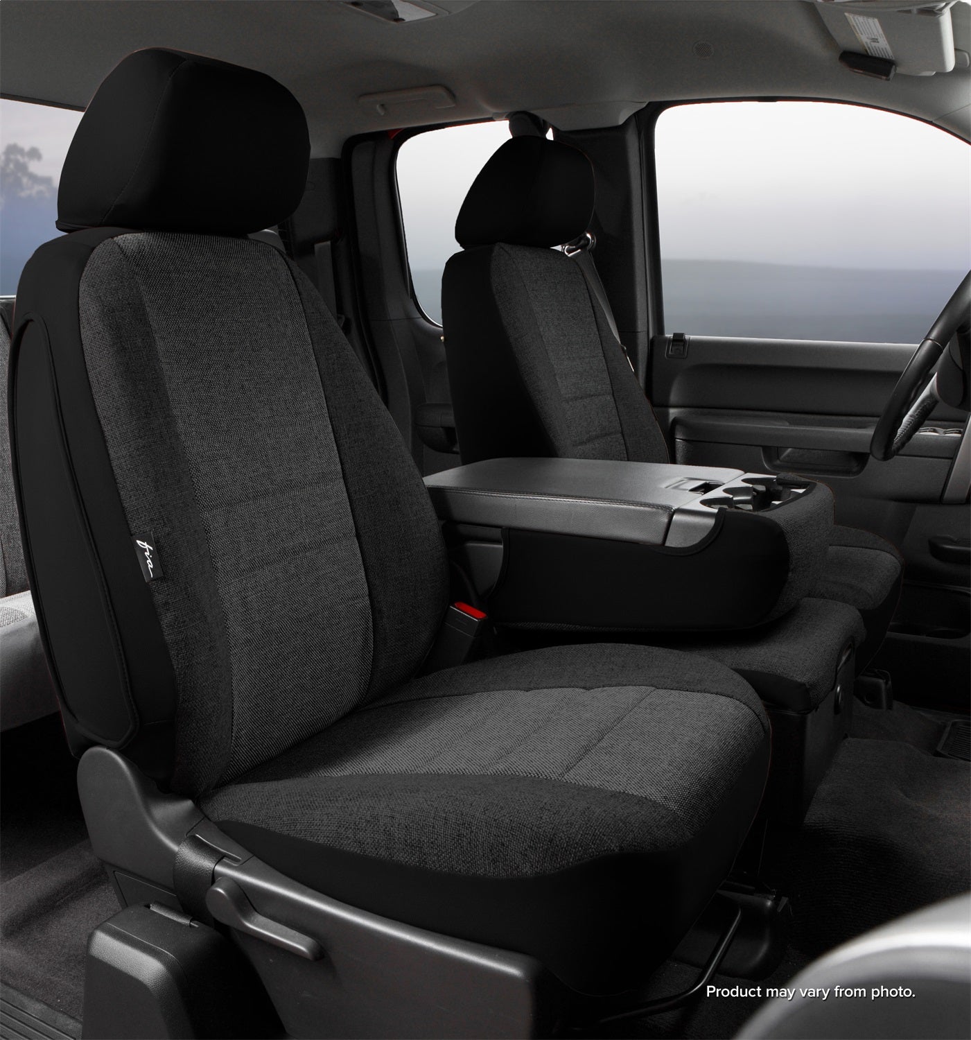 OE Style Custom Fit Seat Covers install quickly and easily with Fia's patented Super-Grip technology. This is an advanced concept that utilizes a slip-resistant fastening system that uses belt and buckle fasteners, zippers (on some models) and Velcro. To ensure these seat covers grip the cover to the seats for a tight snug fit. All Fia seat covers are constructed of highly durable tweed fabric that is flame resistant, will not fade from sunlight and maintains the color without fading or running. They feature a foam padded back support for added comfort. These seat covers are available in charcoal (charcoal center panel with black side panel), gray (light gray center panel with dark gray side panel) and taupe (taupe center panel with mocha side panel).