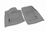 Rugged Ridge Floor liners provide complete protection for the cabin floor of your vehicle while keeping it looking factory fresh. Each liner is perfectly contoured to your vehicles floor for precise secure fitment (floor hook attachment where applicable). The raised lip captures all spills, water and debris keeping your interior pristine. The Chevron-shape patented Deep Tread Technology channels liquid away from your shoes keeping them dry. Made of a durable OE-quality Thermoplastic material that can withstand the rigor of daily abuse. Backed by our Limited Lifetime Warranty. Patent 8,163,369, D627,285, 2,699,641