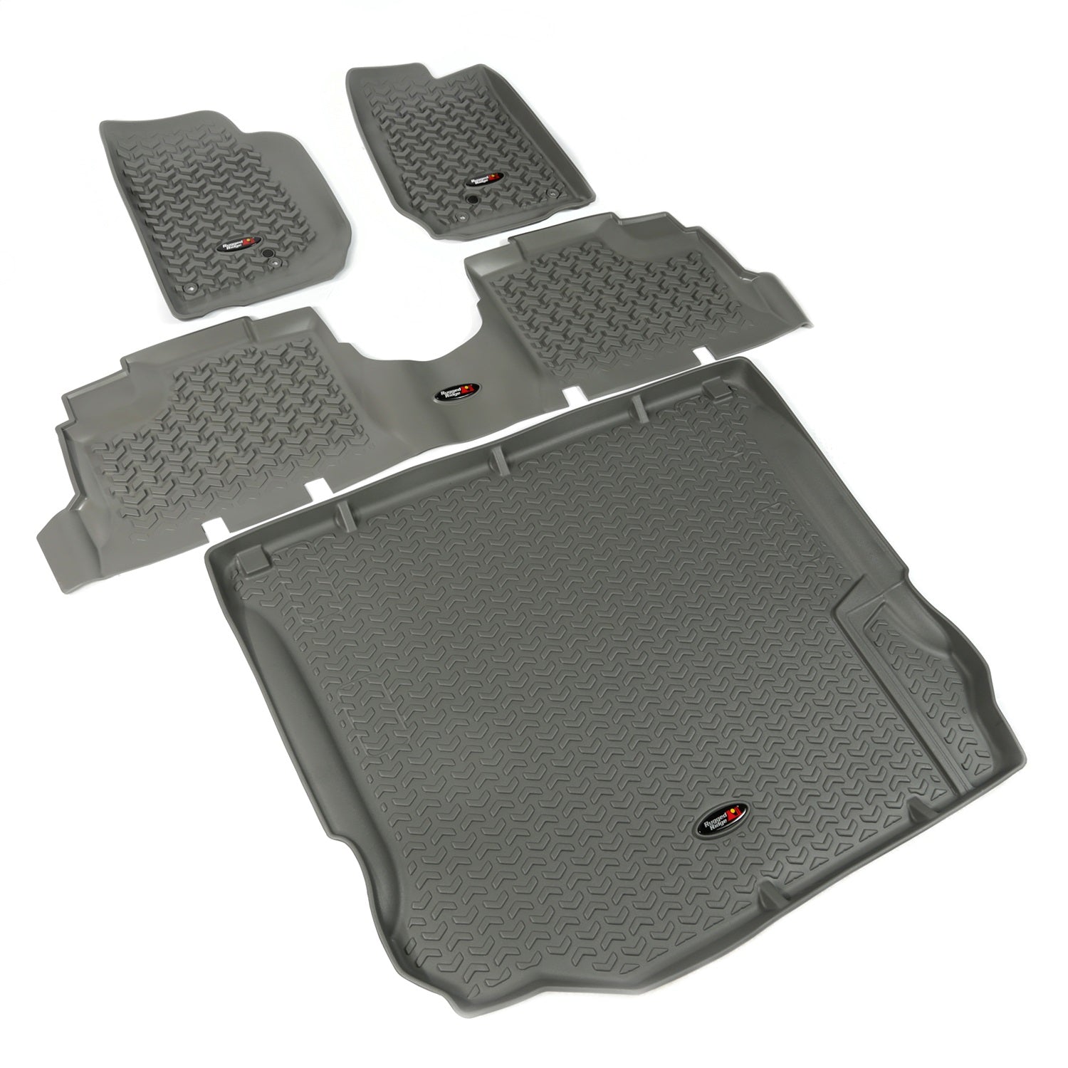Need an affordable solution to keep the cabin floors of your Jeep looking factory fresh? Try Rugged Ridges All Terrain Floor Liners! Made of a durable OE-quality thermoplastic material that can withstand the rigor of daily abuse, each liner is perfectly contoured to your vehicles floor for precise secure fitment (floor hook attachment where applicable). The raised lip captures all spills, water and debris keeping your interior pristine. Features a chevron shape patented deep tread technology. Patent 8,163,369, D627,285, 2,699,641