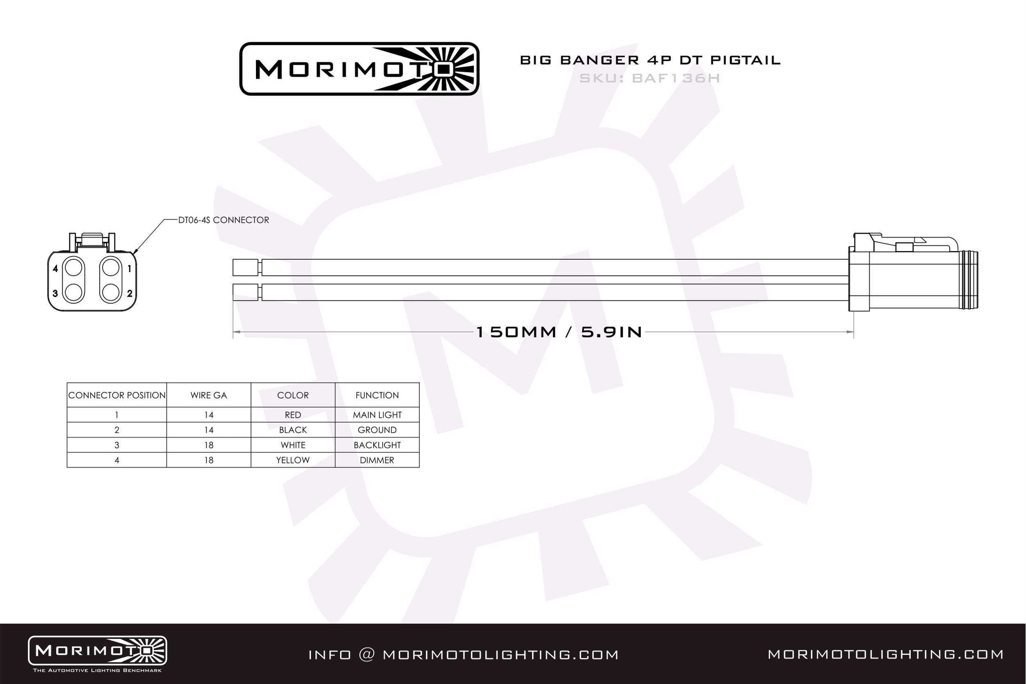 Morimoto BAF136H 1x 4P DT Pigtail Harness
