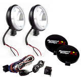Designed, engineered, and tested to stand up to the rigors of off road use, our lights are constructed with heavy-duty stamped steel housings, and crystal glass lenses set in shock absorbent weatherproof rubber gaskets. The brilliant 12V 100 watt halogen bulbs slice through fog, rain or snow to help illuminate the road even under the toughest conditions. Available in Round, Rectangular and Slim housings in either a black or stainless steel finish to best suit your application. Slim lights feature a narrow profile just 2 13/16 inch thick! This sleek design allows them to be mounted in places most lights wont fit. They are perfect for windshield and grille mount light systems. The lights are available individually or in kits containing a pre-terminated wiring harness, relay, impact resistant stone guards (white stone guards with stainless, black with black) and illuminated dash switch.