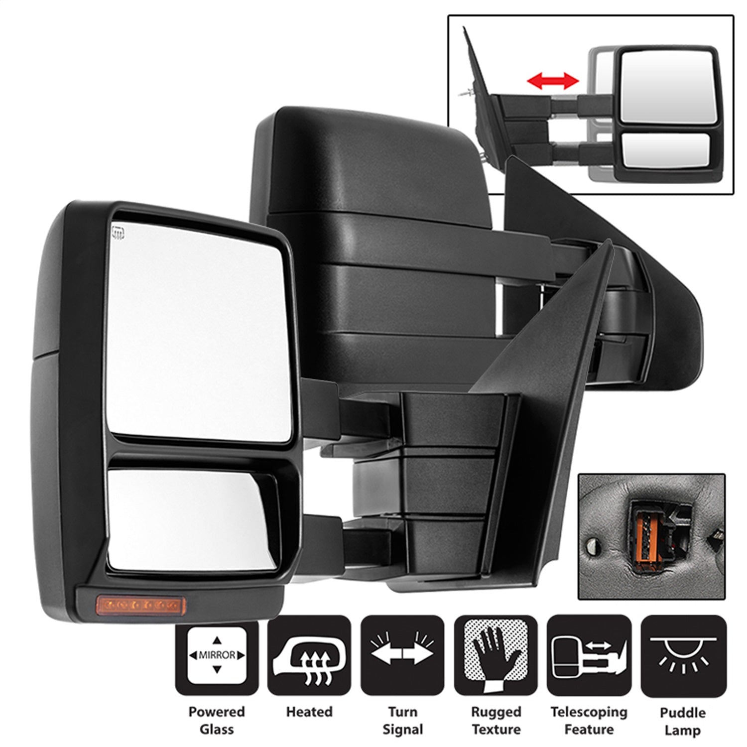 XTune Door Mirror Set; Left And Right; Power Heated; Amber; LED Turn Signal; Telescoping;