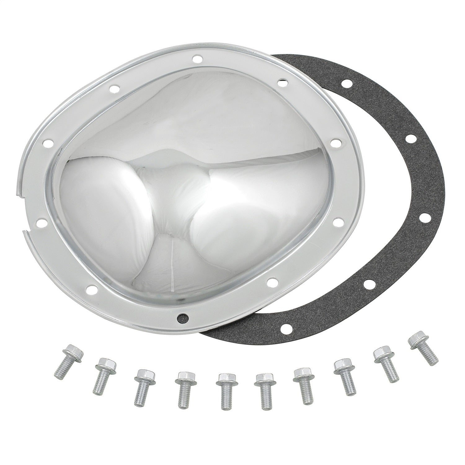 The Mr. Gasket chrome plated rear end cover is made from heavy-gauge steel, and comes complete with bolts and gaskets.