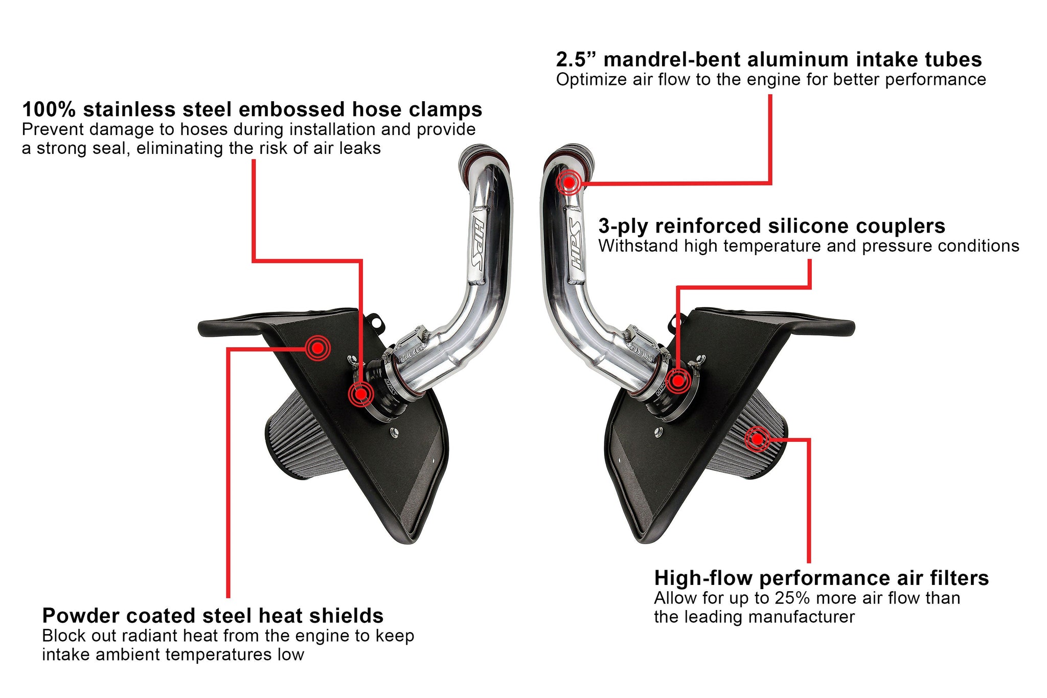 Dual 2.5" mandrel-bent aluminum tubing designed to optimize air flow.