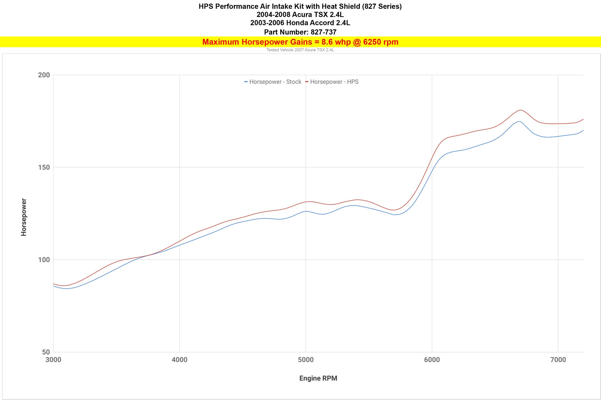 • Improves acceleration and throttle response with dyno proven gains of up to 8.6 horsepower and 7.3 lb-ft of torque.