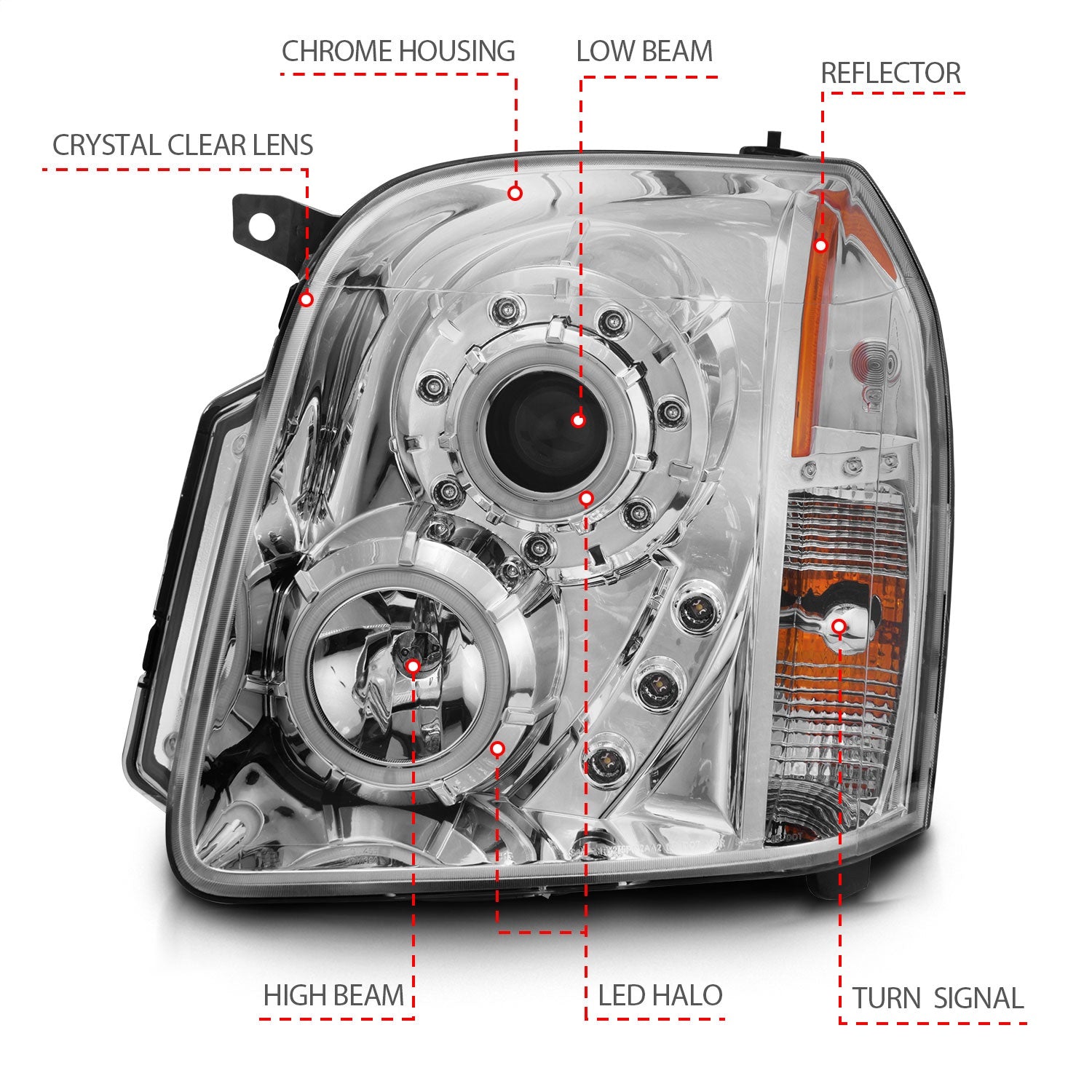 Projector Headlight Set, w/Halo, Clear Lens, Chrome Housing, Pair, CCFL, . Guaranteed To Improve Your Vehicles Appearance. Rigorously Tested For Fit And Function. Simple Plug And Play. No Modifications Required. Easy Installation Using Common Hand Tools. Uses Stock Mounting Locations And Hardware. D.O.T. Compliant To S.A.E. Standards. Sold As A Pair.