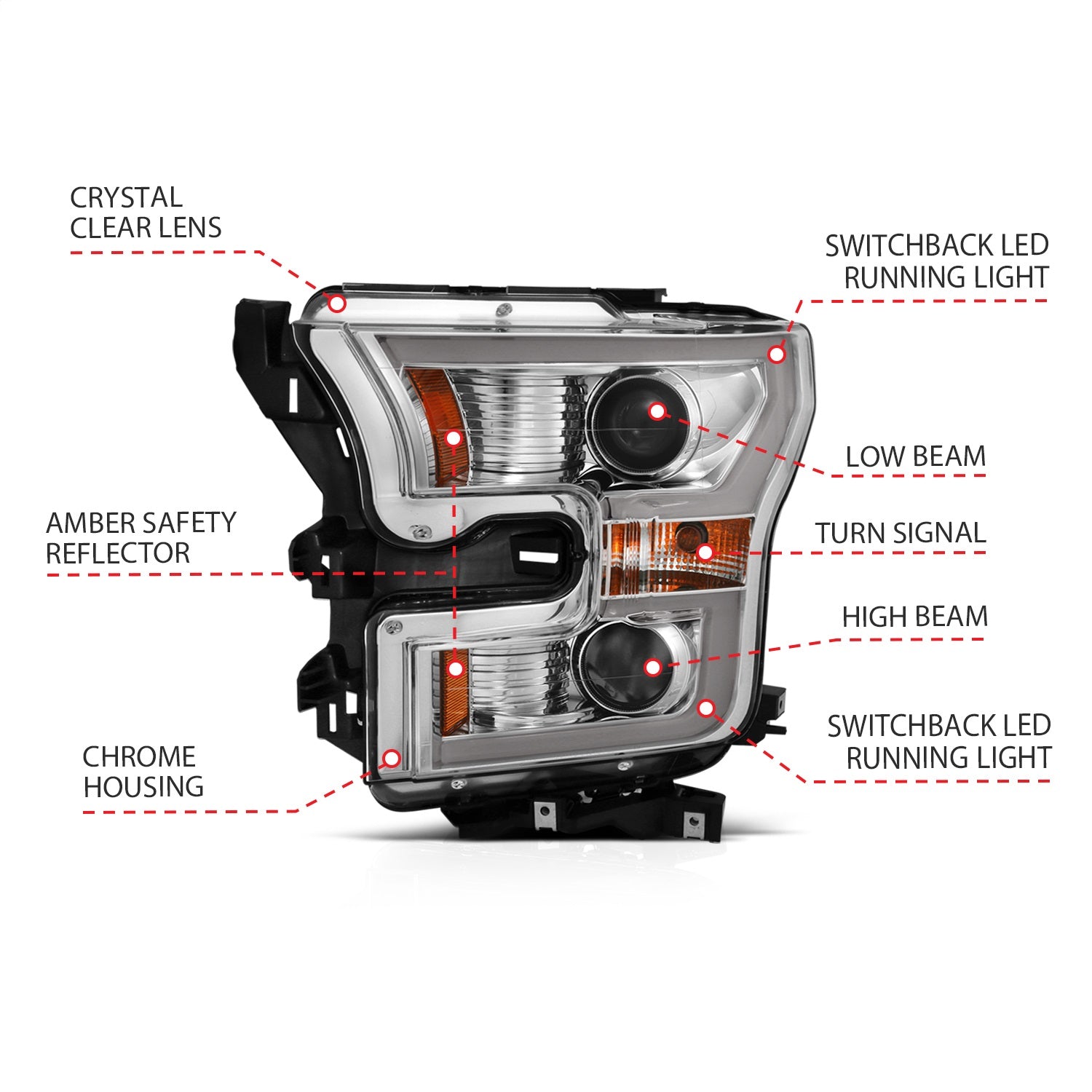 Anzo USA 111358 Projector Headlight Set Fits 15-17 F-150