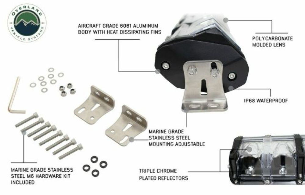 Warranty: The EKO LED Light Bar is produced to the highest manufacturing standards and are covered by a limited lifetime warranty that protects the original purchasers against defects in material and workmanship. Go to Overland Vehicle Systems website for more information regarding the warranty.