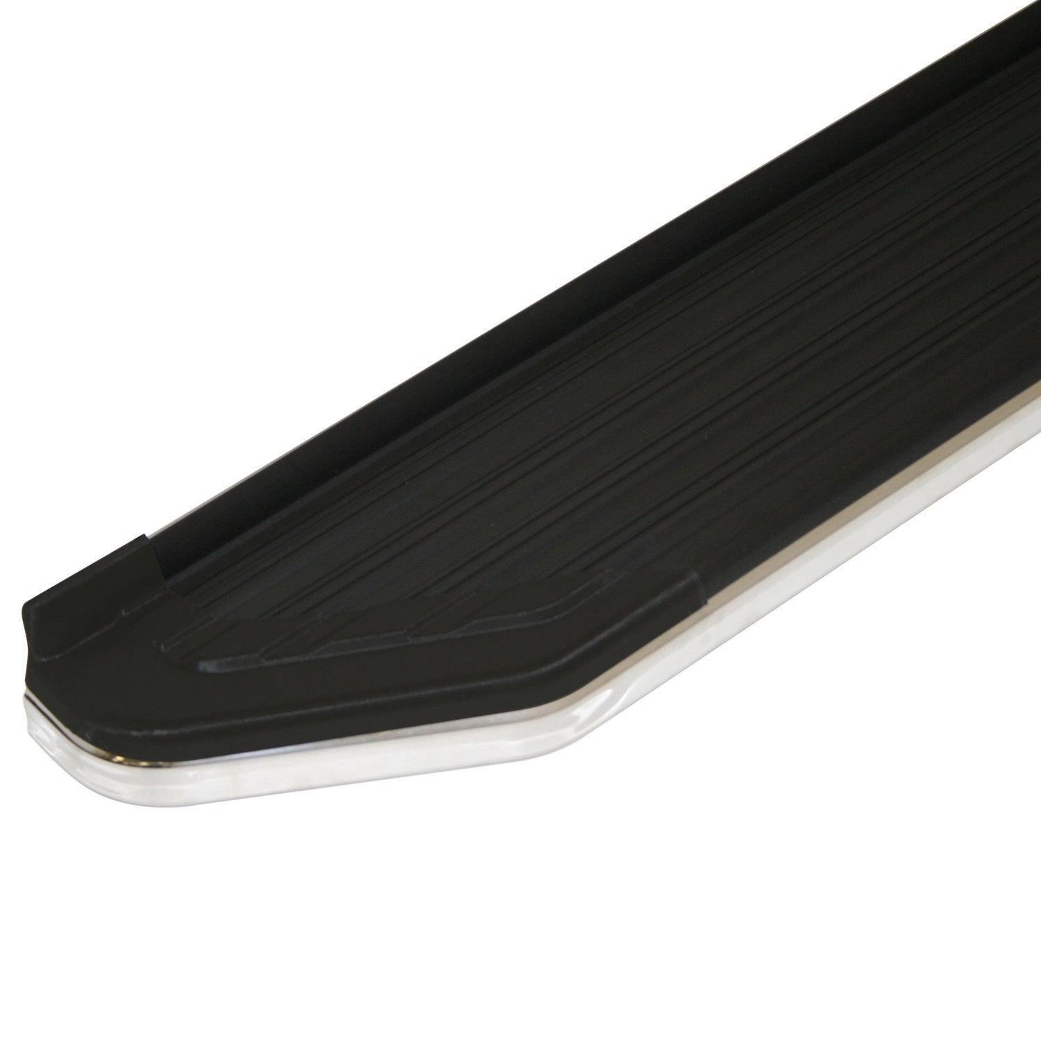 Custom Running Boards with Brackets; Extruded Aluminum Base with Black Powdercoated Accent; Rubber step area runs full length of the board; Gap strip molded directly into the running board