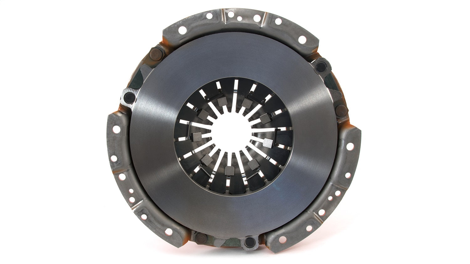 The Centerforce(R) Dual Friction(R) Clutch Series is a performance matched pressure plate & disc combination featuring the patented Centerforce centrifugal weight system (where applicable) and specialized machining processes to provide a performance clutch that offers exceptional street characteristics, while offering outstanding holding-capacity and durability. Furthermore, the Centerforce Dual Friction disc has an organic full facing on one side for longevity and an organic segmented facing on the other side providing increased holding capacity. Some applications have the organic segmented facings of both sides. The Dual Friction clutch is engineered for those who are looking for the ultimate in street/strip holding power and performance without sacrificing pedal effort and driver control. While the Dual Friction has been engineered primarily as a street clutch it can be used in mild competition applications.