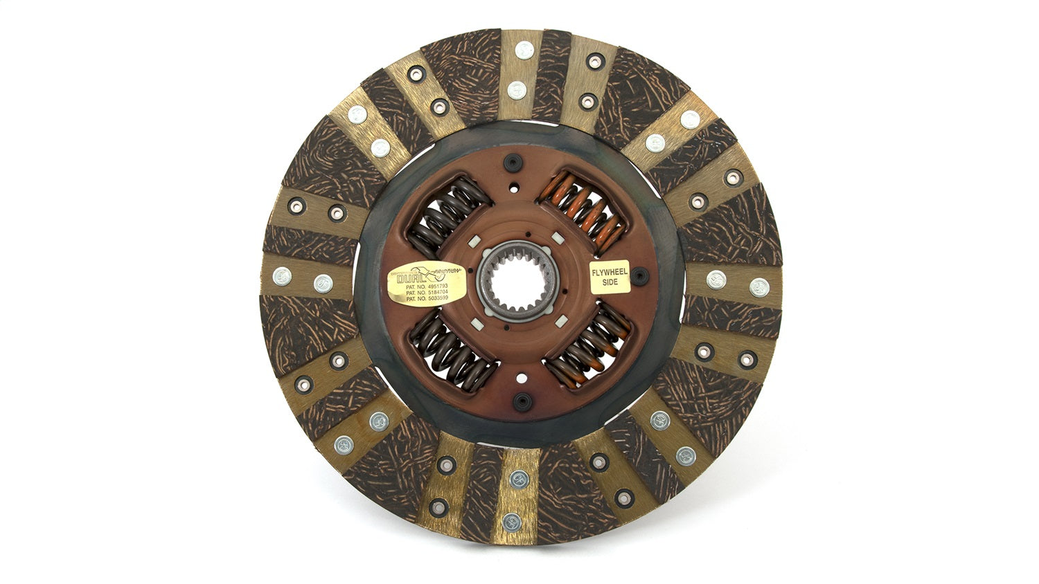 The Centerforce(R) Dual Friction(R) Clutch Series is a performance matched pressure plate & disc combination featuring the patented Centerforce centrifugal weight system (where applicable) and specialized machining processes to provide a performance clutch that offers exceptional street characteristics, while offering outstanding holding-capacity and durability. Furthermore, the Centerforce Dual Friction disc has an organic full facing on one side for longevity and an organic segmented facing on the other side providing increased holding capacity. Some applications have the organic segmented facings of both sides. The Dual Friction clutch is engineered for those who are looking for the ultimate in street/strip holding power and performance without sacrificing pedal effort and driver control. While the Dual Friction has been engineered primarily as a street clutch it can be used in mild competition applications.