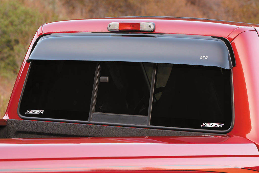 Factory appearance with no holes to drill and no hardware required. Made of reinforced Composolite acrylic that is Smoke in color. These GT Styling Shadeblade window air deflectors are designed to bring air down over the rear window, reducing rain, dust, and road grime buildup. They are manufactured from composite material and have a black smoke finish for a unique look. GT Styling Shadeblade window air deflectors also provide shade to the cab interior and reduce headlight glare at night. Limited lifetime warranty.