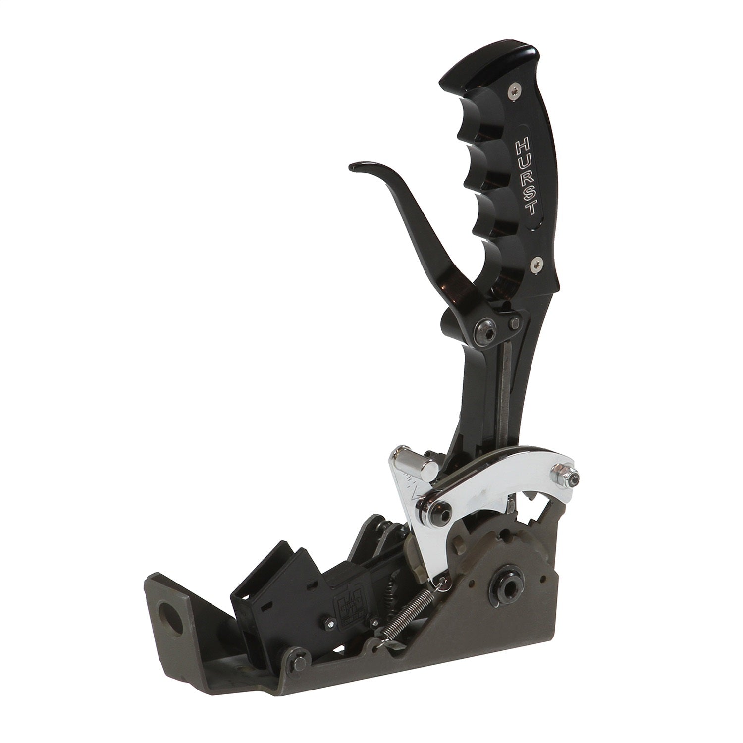 The Pistol-grip Quarter Stick shifter provides positive gear change control for both street and race applications. It's compact size fits easily in racecars with limited space and is very lightweight at only 2.5 pounds. Features include black oxide coated steel construction, 1018 hardened steel gate plate, ergonomic billet aluminum pistol-grip shift handle that incorporates a momentary switch which can be used to activate a Hurst Roll control, a trans-brake or a nitrous system. Also comes with a factory installed neutral safety switch, chrome-plated trigger and spring loaded reverse Loc/Out mechanism that complies with NHRA/IHRA safety rules. Includes all necessary hardware, a 5 foot long shifter cable and installation instructions. Note: Optional aluminum mounting bracket, backup light switch and lightweight aluminum or plastic shifter covers available separately.