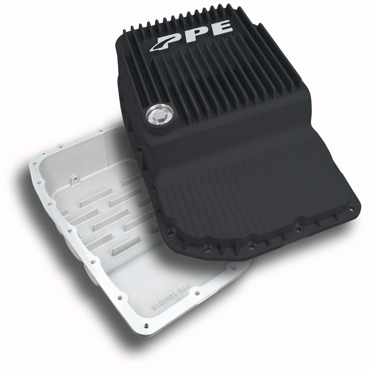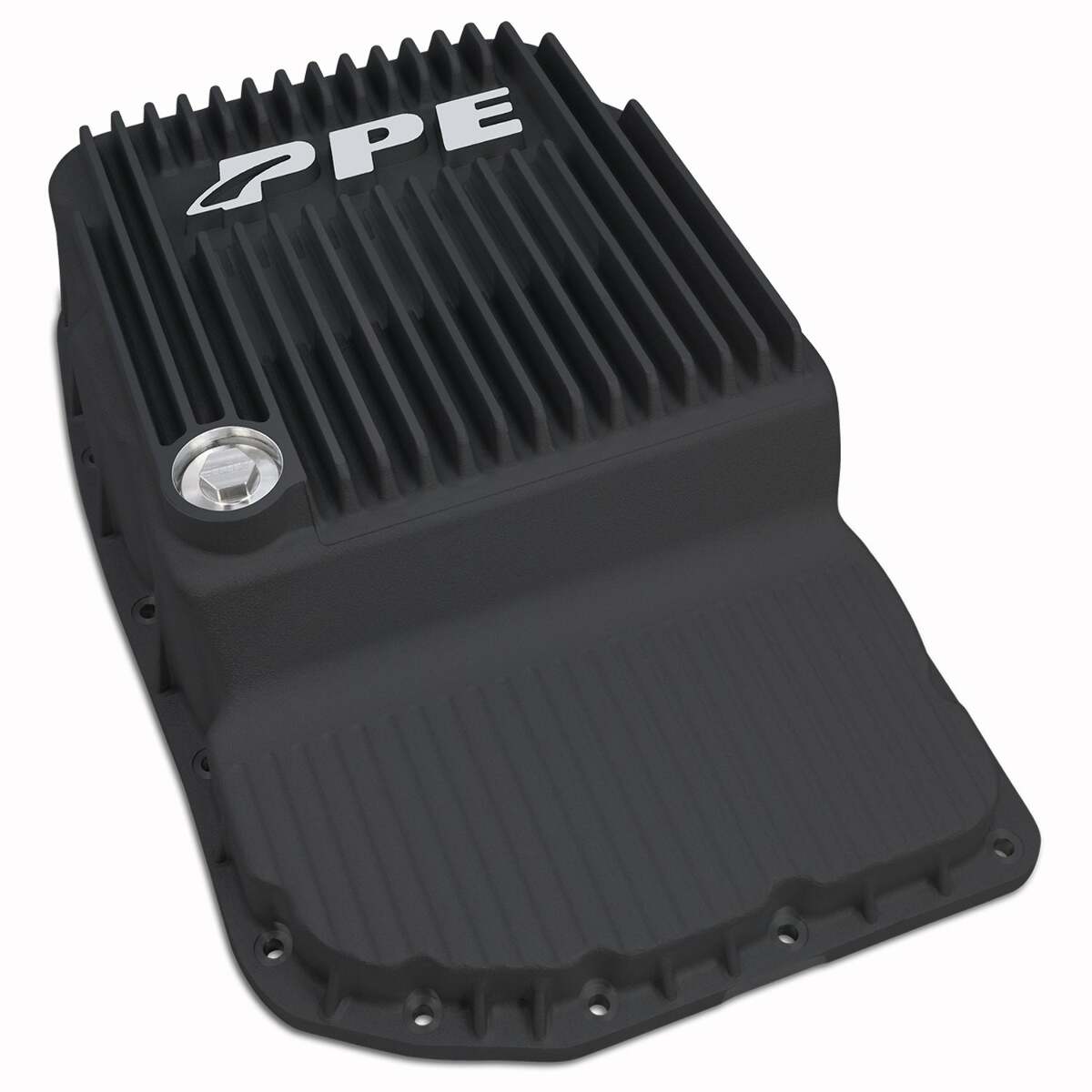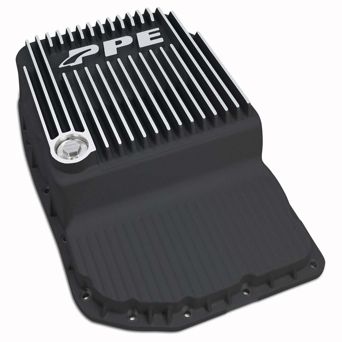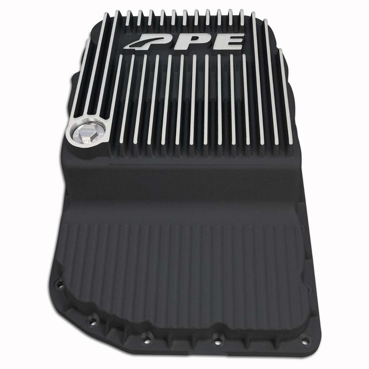 Ditch the grit. Get rid of the dirtiest oil left in the valley of your stock pan from all your previous transmission oil changes. Upgrade the stock stamped steel pan to the PPE Heavy-Duty Cast Aluminum Pan. A conveniently located one-inch drain plug promotes a full transmission fluid drain.