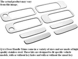 Stainless Steel DOOR HANDLE and TAILGATE HANDLE TRIM ACCENTS are designed to be a CHROME LIKE accent for the door handles and or tailgate handle. They are unique, creative and individualized! Some door handle accent kits are simply strips of steel that enhance the existing structure, while others may be a surround trim, complete cover, or any combination thereof. Some door handle trim accents accommodate smart key access, passenger key access or rear camera mounts. Please refer to the product listing for more details. Stainless steel door handle and or tailgate handle accessory trim is pre-formed for each vehicle model from a Highly Polished Stainless Steel, with a full coverage 3M acrylic foam adhesive backing to enhance the look of your vehicle. All of our stainless steel products are created from inception to packaging by our team of professionals, on location in Westford, Mass. Door handle and or tailgate handle accent trim is polished to a mirror shine, giving it a CHROME look. The polished surfaces are protected by a plastic film to be removed after installation. All of QAA's Stainless Steel Trim products are easy to install with a peel and stick application of the pre-applied 3M tape on every piece; no drilling, cutting or alterations are required. The bond is water tight and will last a lifetime.