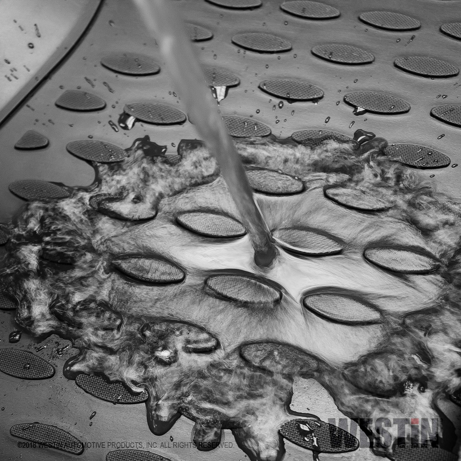 Westin's Profile Floor Liners Front Row protects the driver and passenger side floor areas from daily wear and tear. The durable and odorless rubberized polymer material maintains its shape in heat, cold or from heavy loads. They feature a raised textured surface that provides great traction and can be easily cleaned with soap and water. Front row liners are designed to accommodate vehicles equipped with retainer hooks where applicable. Great for all seasons!